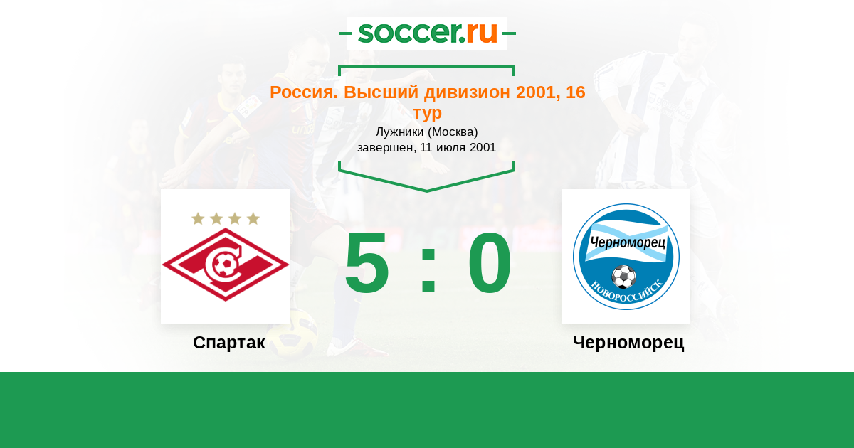 Россия. Премьер-Лига 01.10.2000 Черноморец Логотип футбольный клуб Черноморец (Новороссийск) 1:4 Логотип футбольный клуб Спартак (Москва) Спартак