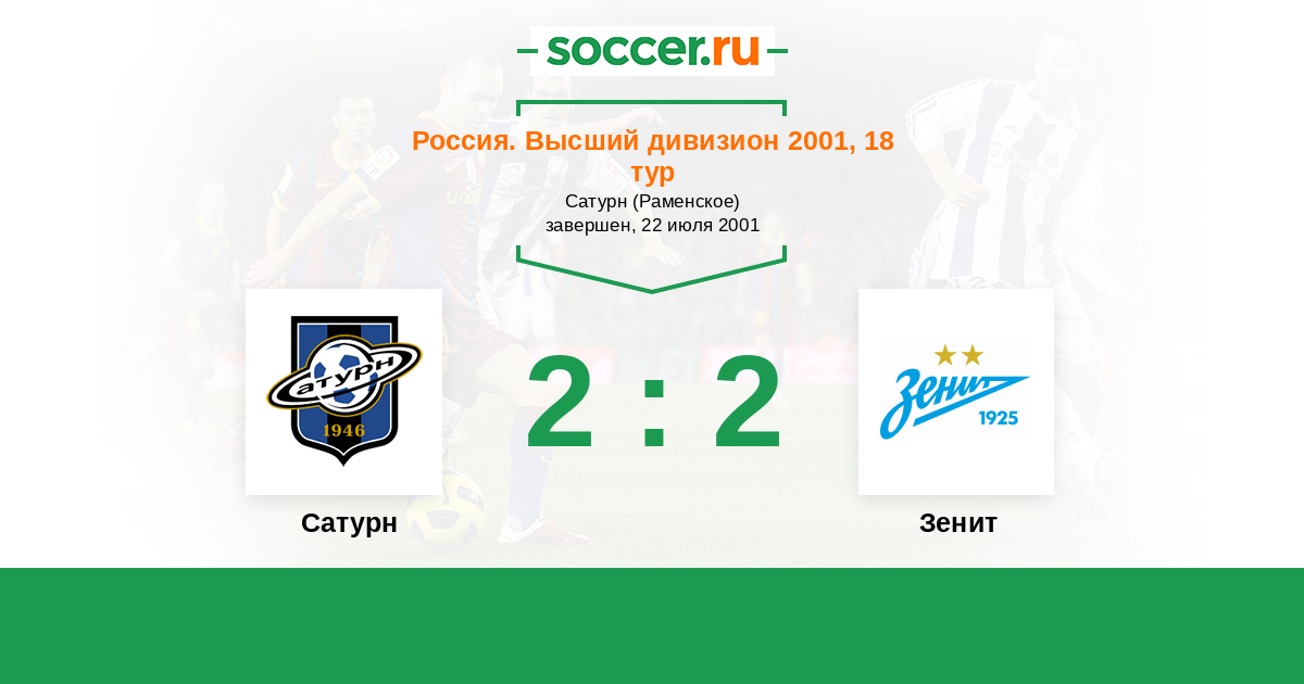 Россия. Премьер-Лига 29.07.2000 Зенит Логотип футбольный клуб Зенит (Санкт-Петербург) 1:1 Логотип футбольный клуб Сатурн (Раменское) Сатурн