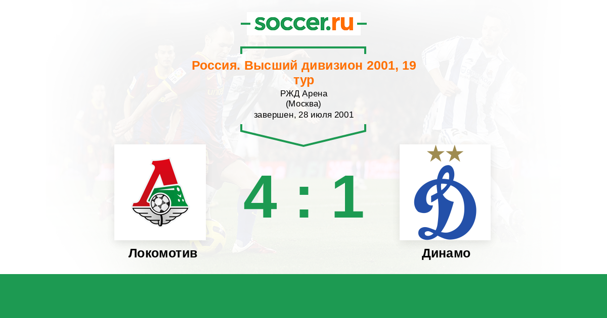 Россия. Премьер-Лига 14.04.2001 Динамо Логотип футбольный клуб Динамо (Москва) 1:2 Логотип футбольный клуб Локомотив (Москва) Локомотив