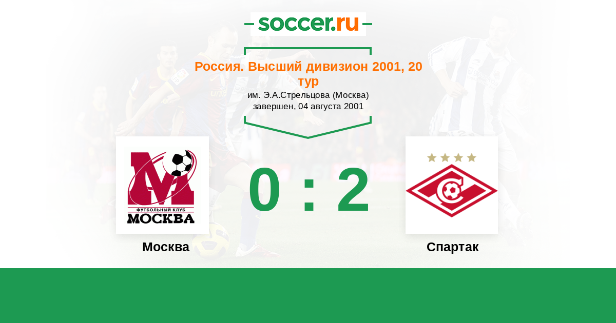 Россия. Премьер-Лига 18.04.2001 Спартак Логотип футбольный клуб Спартак (Москва) 1:1 Логотип футбольный клуб Торпедо-ЗИЛ (Москва) Торпедо-ЗИЛ