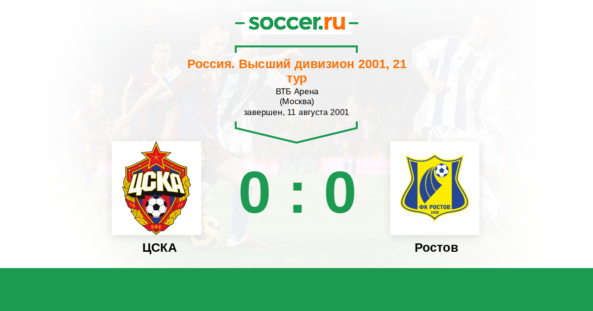 Россия. Премьер-Лига 28.04.2001 Ростсельмаш Логотип футбольный клуб Ростсельмаш (Ростов-на-Дону) 0:1 Логотип футбольный клуб ЦСКА (Москва) ЦСКА