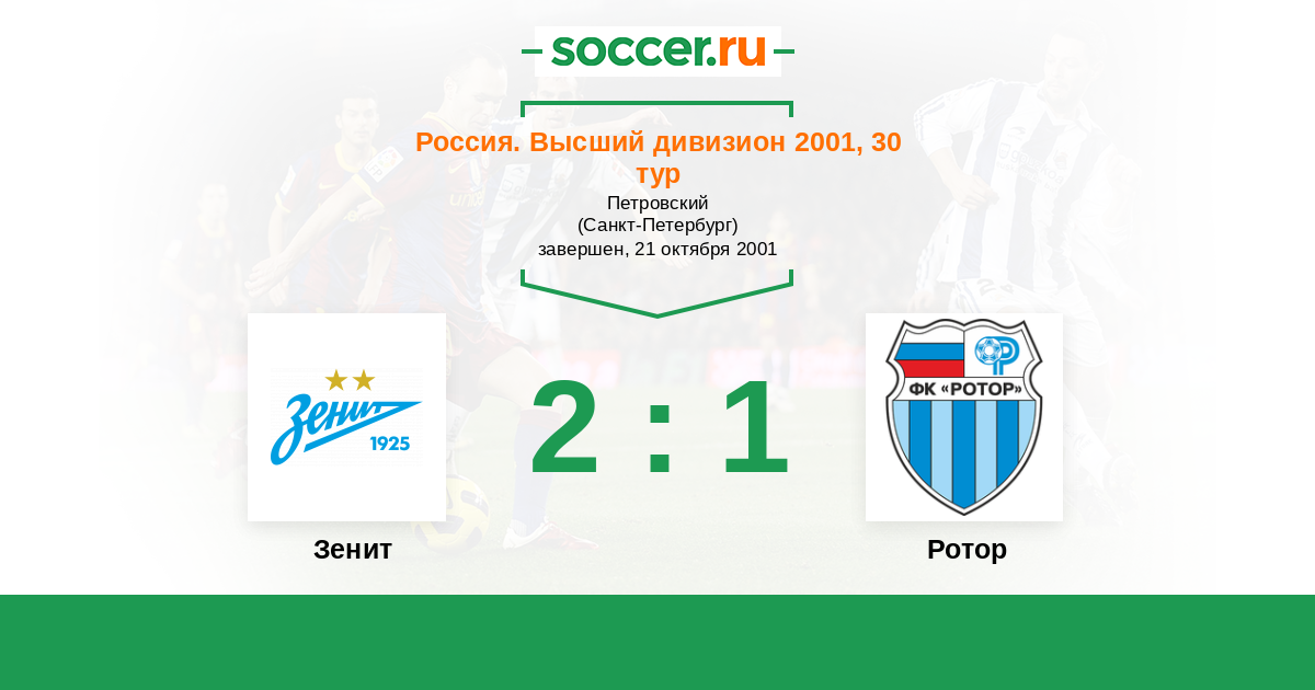 Россия. Премьер-Лига 10.03.2001 Ротор Логотип футбольный клуб Ротор (Волгоград) 0:0 Логотип футбольный клуб Зенит (Санкт-Петербург) Зенит