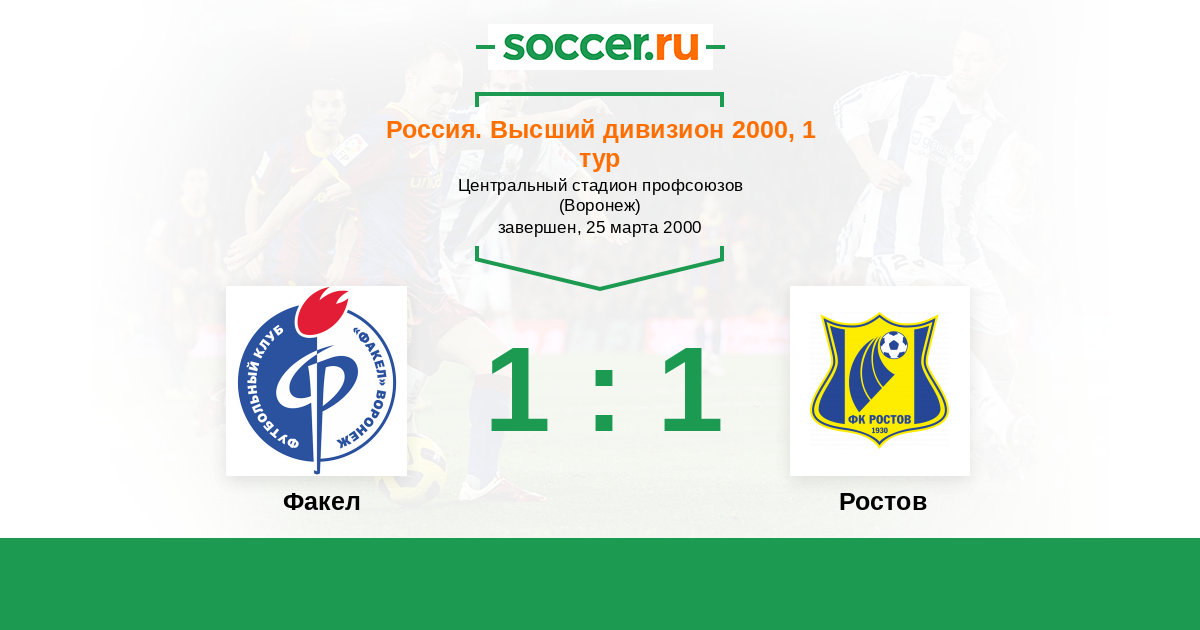 Россия. Премьер-Лига 12.11.2000 Ростсельмаш Логотип футбольный клуб Ростсельмаш (Ростов-на-Дону) 1:1 Логотип футбольный клуб Факел (Воронеж) Факел