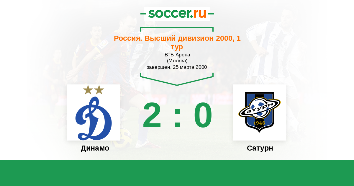 Россия. Премьер-Лига 12.11.2000 Сатурн Логотип футбольный клуб Сатурн (Раменское) 1:0 Логотип футбольный клуб Динамо (Москва) Динамо
