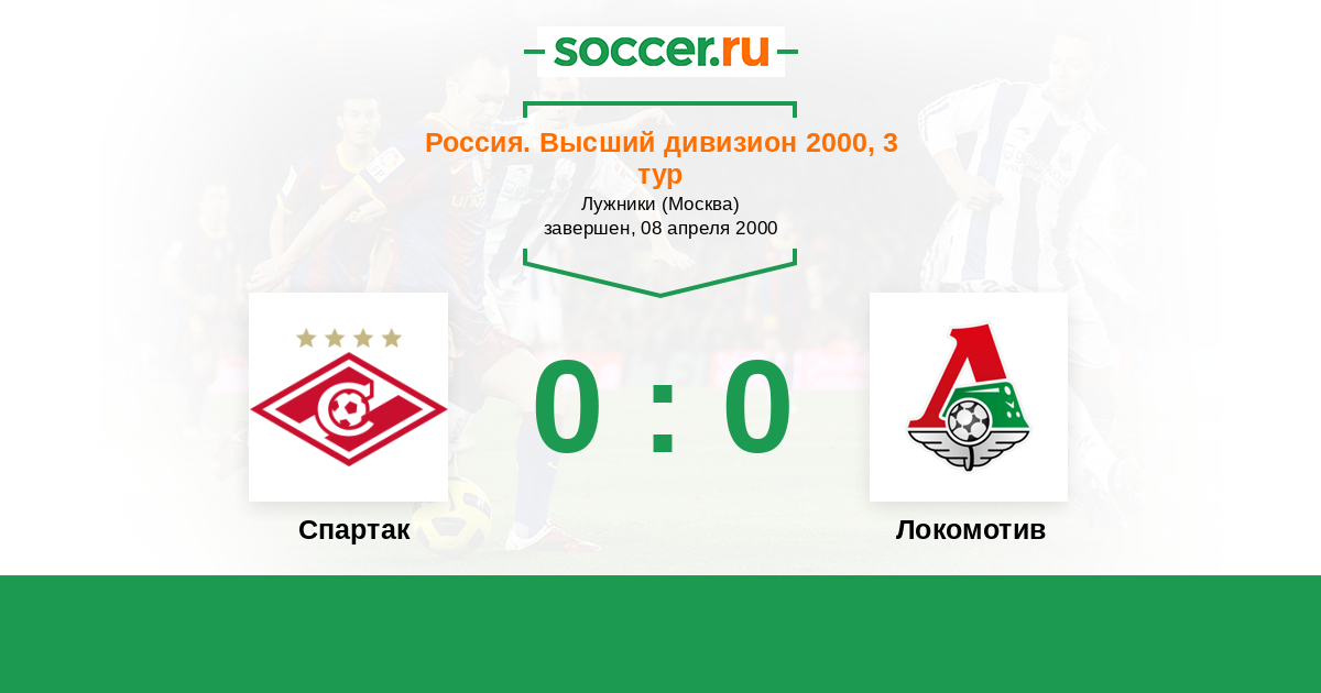 Россия. Премьер-Лига 16.07.2000 Локомотив Логотип футбольный клуб Локомотив (Москва) 3:2 Логотип футбольный клуб Спартак (Москва) Спартак