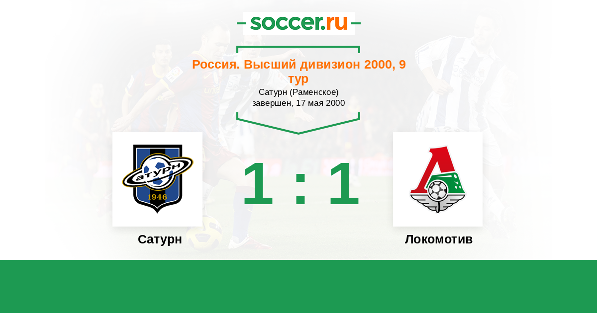 Россия. Премьер-Лига 27.08.2000 Локомотив Логотип футбольный клуб Локомотив (Москва) 1:0 Логотип футбольный клуб Сатурн (Раменское) Сатурн