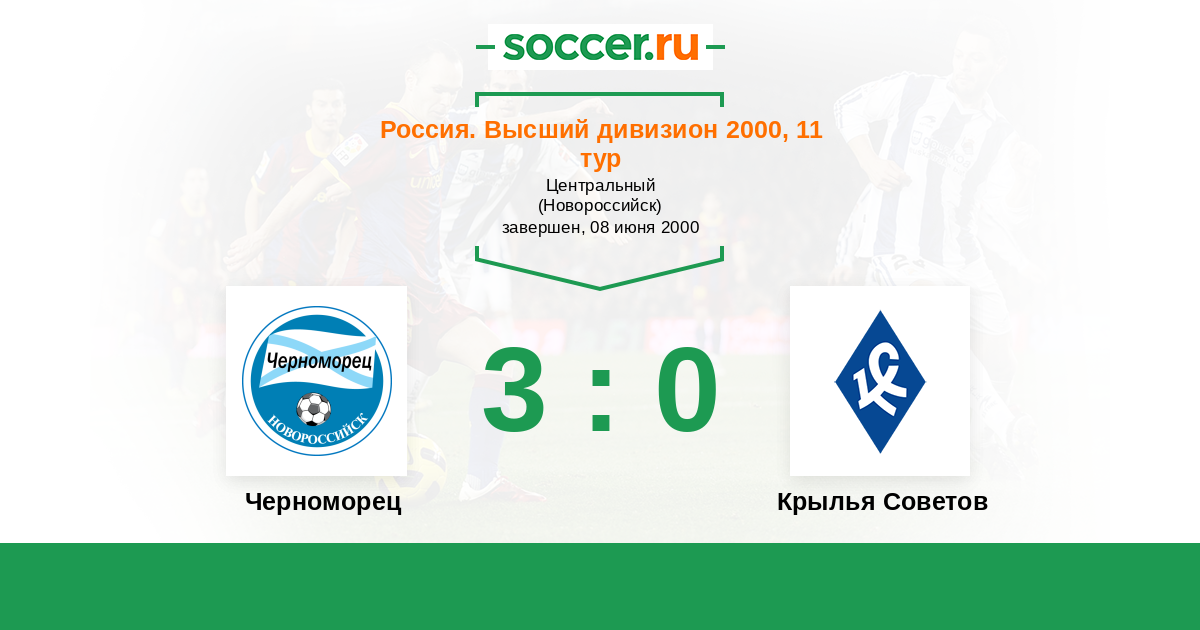 Россия. Премьер-Лига 17.06.1998 Черноморец Логотип футбольный клуб Черноморец (Новороссийск) 4:0 Логотип футбольный клуб Крылья Советов (Самара) Крылья Советов