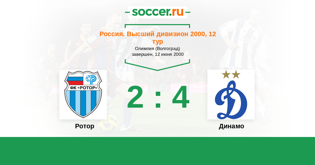 Россия. Премьер-Лига 01.10.2000 Динамо Логотип футбольный клуб Динамо (Москва) 2:0 Логотип футбольный клуб Ротор (Волгоград) Ротор