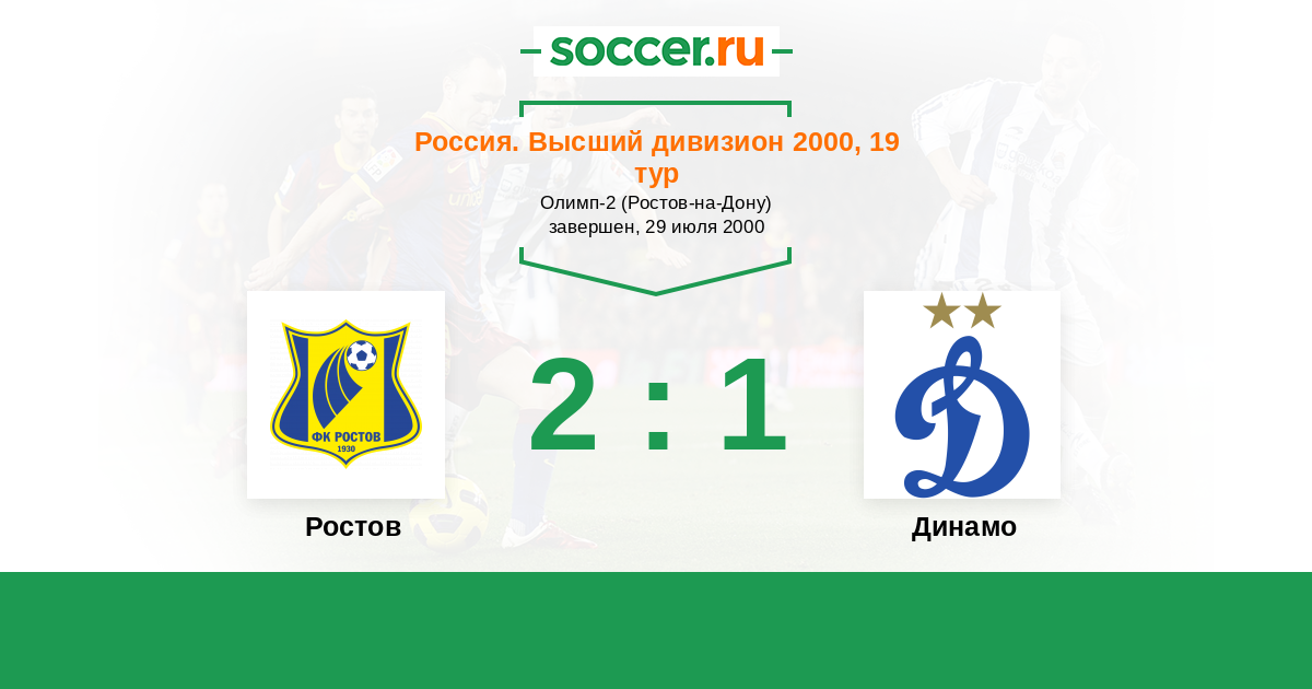 Россия. Премьер-Лига 22.04.2000 Динамо Логотип футбольный клуб Динамо (Москва) 0:0 Логотип футбольный клуб Ростсельмаш (Ростов-на-Дону) Ростсельмаш