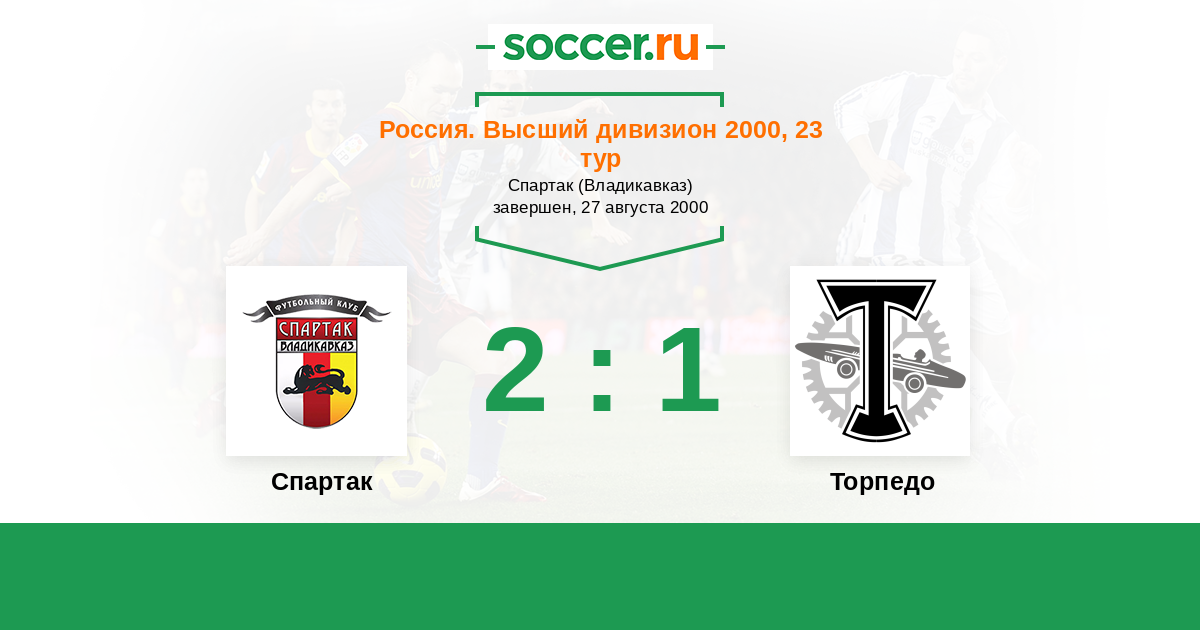 Россия. Премьер-Лига 17.05.2000 Торпедо Логотип футбольный клуб Торпедо (Москва) 2:0 Логотип футбольный клуб Спартак (Владикавказ) Спартак