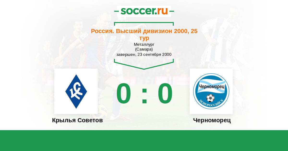 Россия. Премьер-Лига 08.06.2000 Черноморец Логотип футбольный клуб Черноморец (Новороссийск) 3:0 Логотип футбольный клуб Крылья Советов (Самара) Крылья Советов