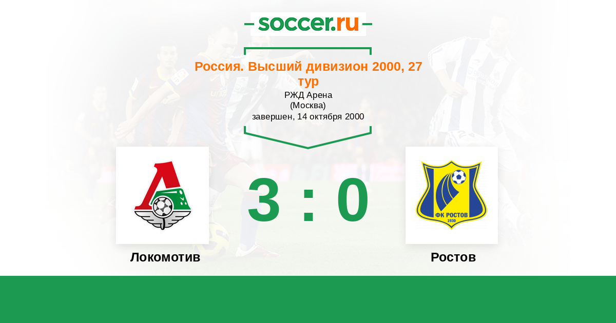 Россия. Премьер-Лига 18.06.2000 Ростсельмаш Логотип футбольный клуб Ростсельмаш (Ростов-на-Дону) 0:0 Логотип футбольный клуб Локомотив (Москва) Локомотив