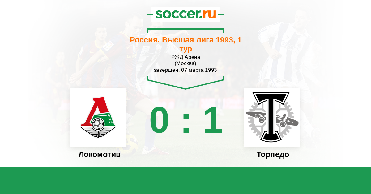 Россия. Премьер-Лига 26.07.1994 Локомотив Логотип футбольный клуб Локомотив (Москва) 8:0 Логотип футбольный клуб Торпедо (Москва) Торпедо