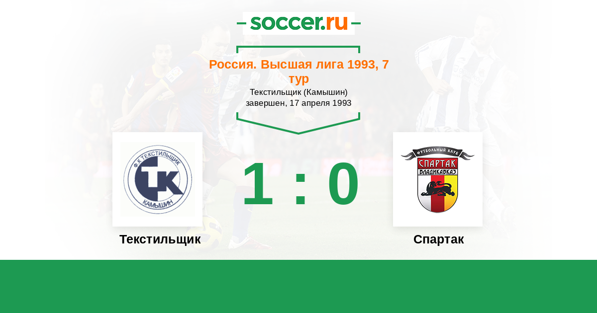 История матча Текстильщик против Спартак
