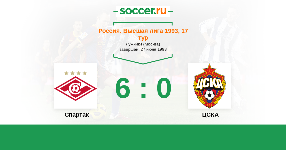 Россия. Премьер-Лига 28.06.1995 Спартак Логотип футбольный клуб Спартак (Москва) 3:1 Логотип футбольный клуб ЦСКА (Москва) ЦСКА