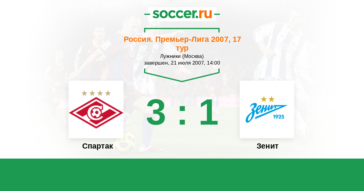 Россия. Премьер-Лига 31.03.2007 Зенит Логотип футбольный клуб Зенит (Санкт-Петербург) 1:3 Логотип футбольный клуб Спартак (Москва) Спартак