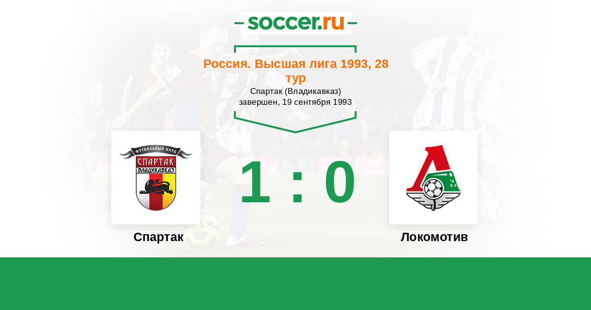 Россия. Премьер-Лига 17.05.1993 Локомотив Логотип футбольный клуб Локомотив (Москва) 0:2 Логотип футбольный клуб Спартак (Владикавказ) Спартак