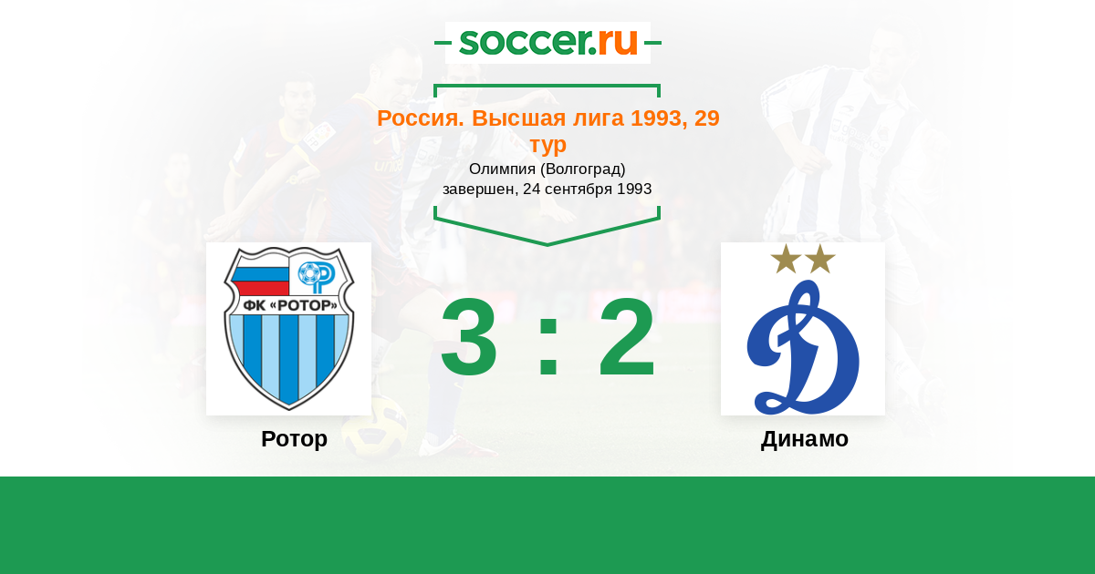 Россия. Премьер-Лига 05.06.1993 Динамо Логотип футбольный клуб Динамо (Москва) 0:0 Логотип футбольный клуб Ротор (Волгоград) Ротор