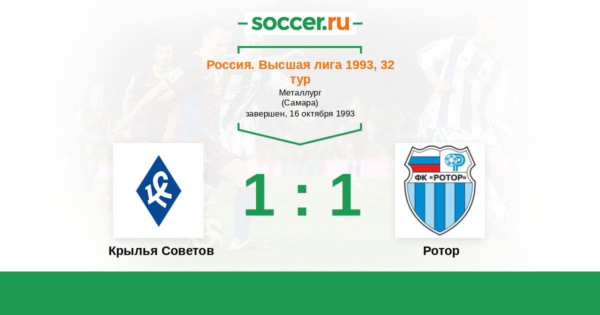 Россия. Премьер-Лига 17.06.1993 Ротор Логотип футбольный клуб Ротор (Волгоград) 2:0 Логотип футбольный клуб Крылья Советов (Самара) Крылья Советов