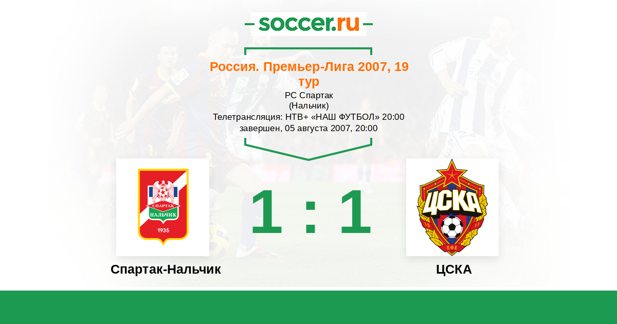 Телетрансляция: НТВ+ «НАШ ФУТБОЛ» 20:00