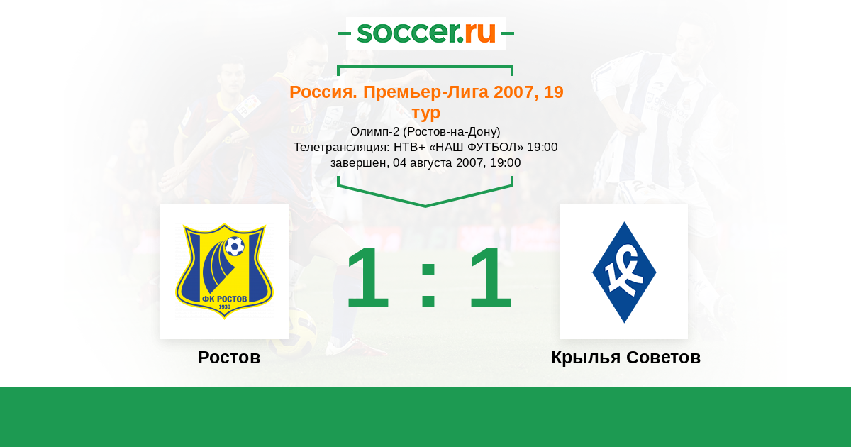 Россия. Премьер-Лига 14.04.2007 Крылья Советов Логотип футбольный клуб Крылья Советов (Самара) 0:1 Логотип футбольный клуб Ростов (Ростов-на-Дону) Ростов