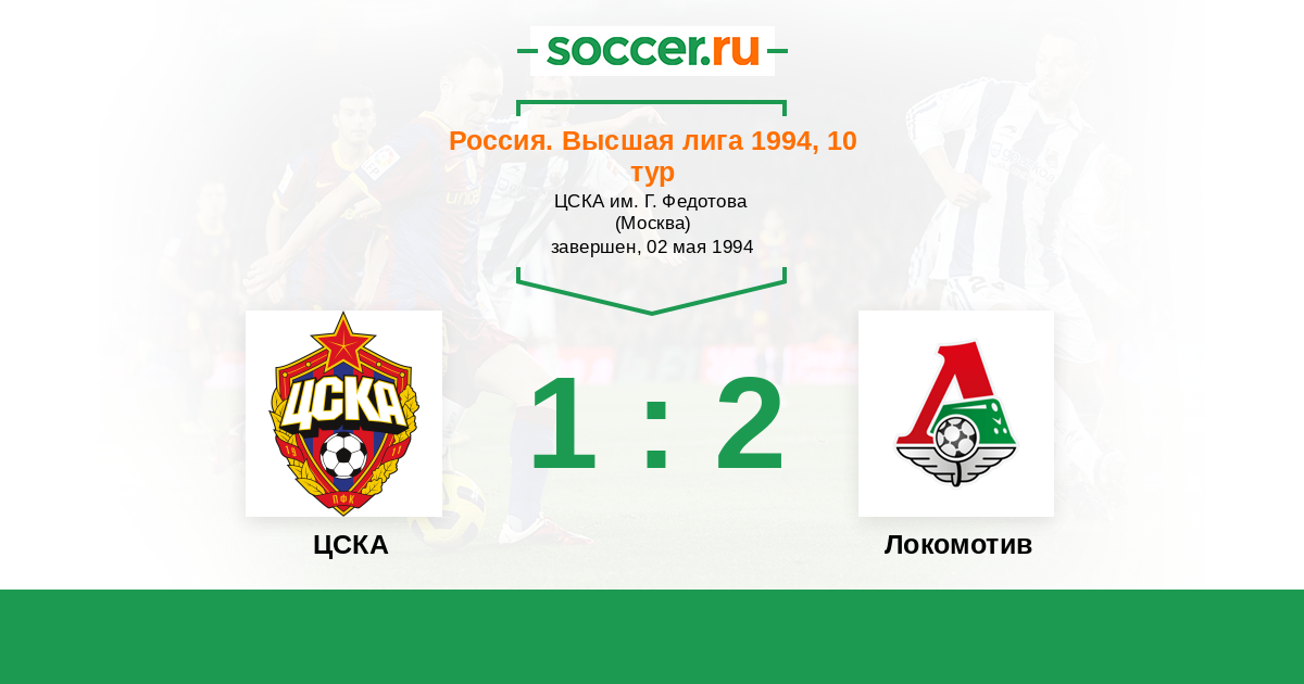 Россия. Премьер-Лига 09.08.1994 Локомотив Логотип футбольный клуб Локомотив (Москва) 1:0 Логотип футбольный клуб ЦСКА (Москва) ЦСКА