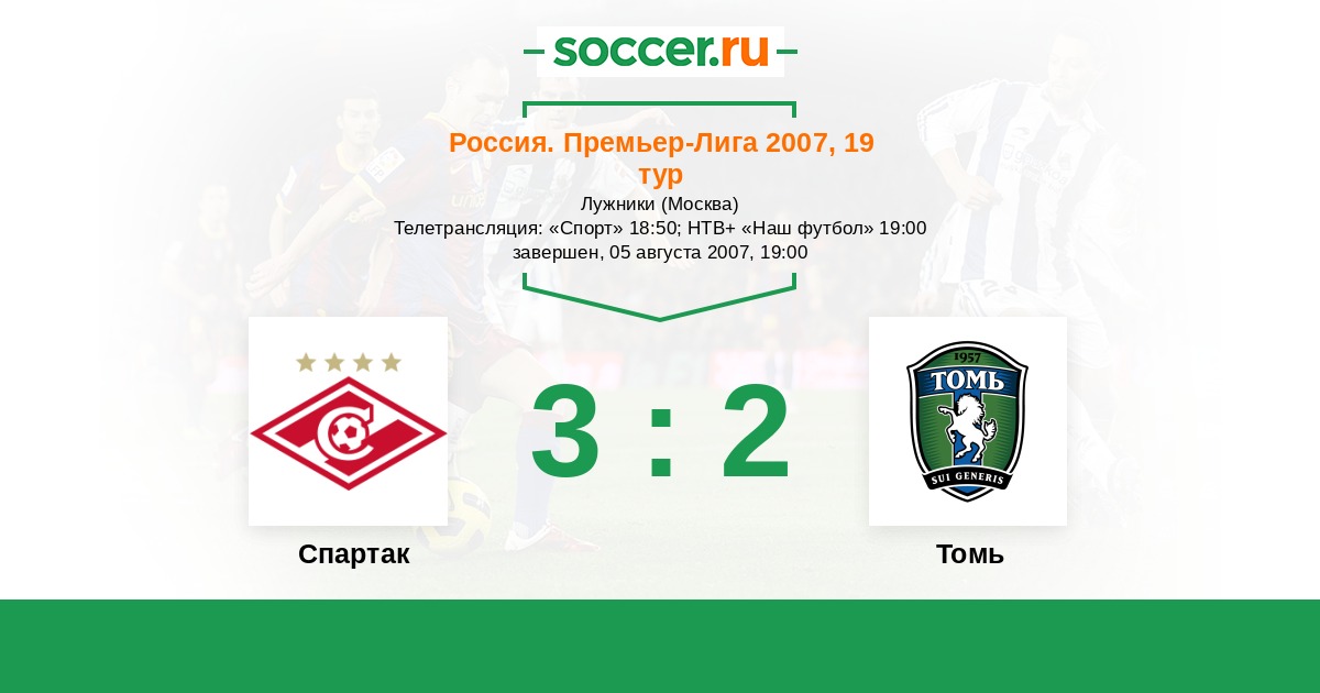 История матча Спартак против Томь