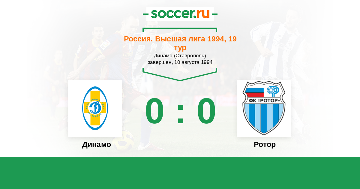 Россия. Премьер-Лига 24.04.1994 Ротор Логотип футбольный клуб Ротор (Волгоград) 1:1 Логотип футбольный клуб Динамо Ставрополь Динамо Ставрополь