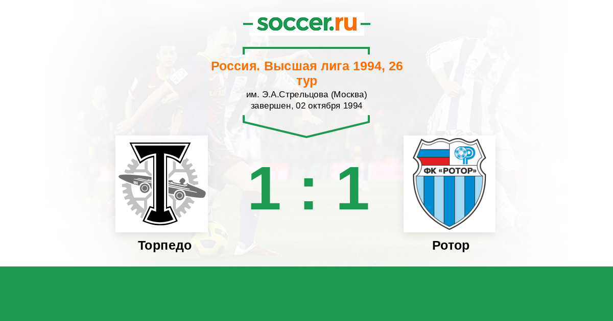 Россия. Премьер-Лига 09.04.1994 Ротор Логотип футбольный клуб Ротор (Волгоград) 2:1 Логотип футбольный клуб Торпедо (Москва) Торпедо