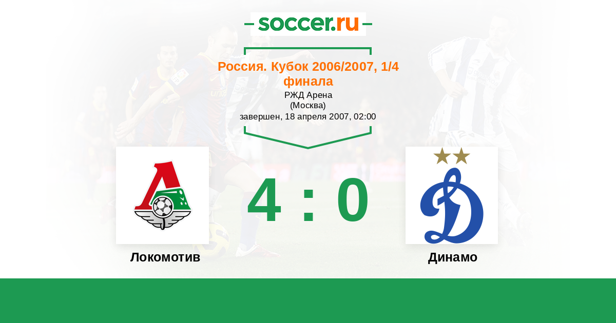 Россия. Кубок 04.04.2007 Динамо Логотип футбольный клуб Динамо (Москва) 1:0 Логотип футбольный клуб Локомотив (Москва) Локомотив
