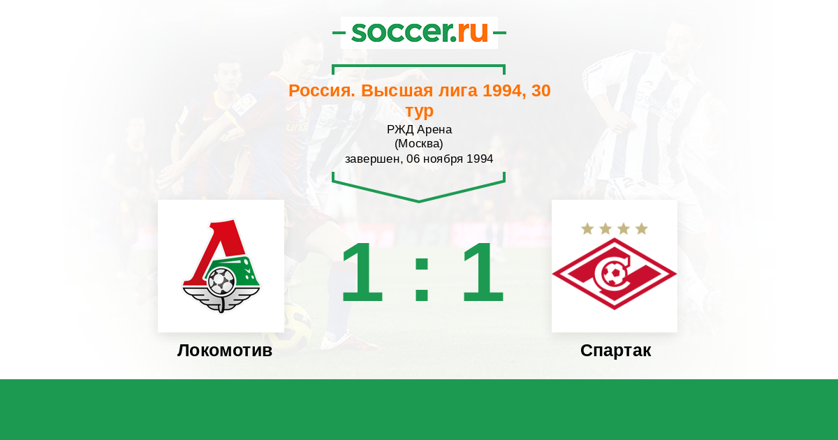 Россия. Премьер-Лига 30.10.1993 Локомотив Логотип футбольный клуб Локомотив (Москва) 0:0 Логотип футбольный клуб Спартак (Москва) Спартак
