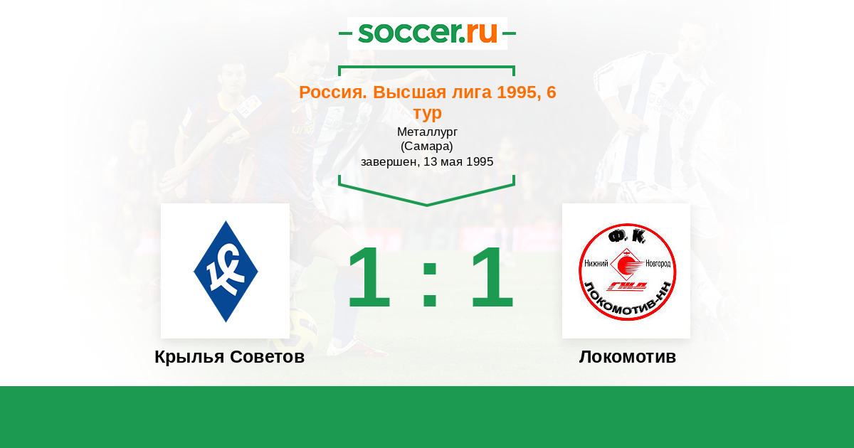 Россия. Премьер-Лига 16.09.1995 Локомотив Логотип футбольный клуб Локомотив (Нижний Новгород) 1:0 Логотип футбольный клуб Крылья Советов (Самара) Крылья Советов