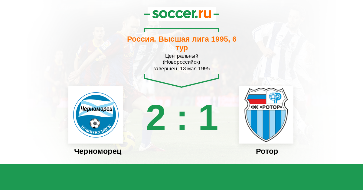 Россия. Премьер-Лига 16.09.1995 Ротор Логотип футбольный клуб Ротор (Волгоград) 5:1 Логотип футбольный клуб Черноморец (Новороссийск) Черноморец