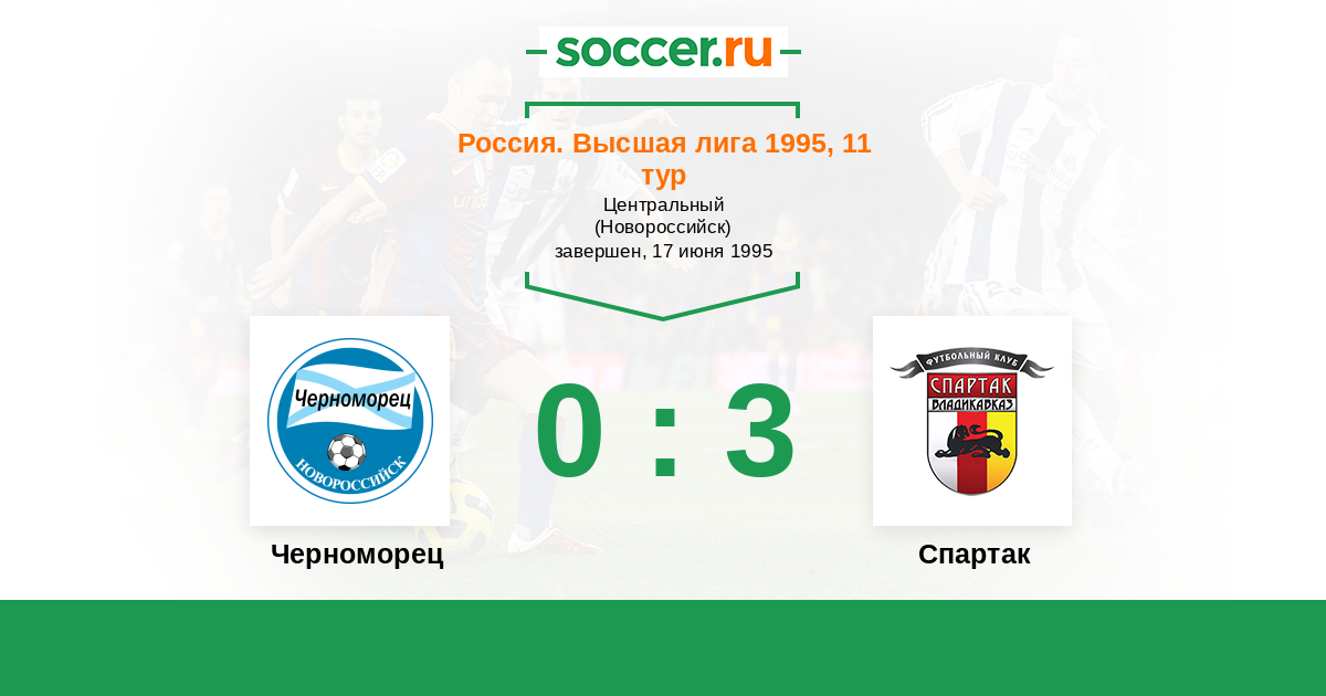 Россия. Премьер-Лига 29.07.1995 Спартак Логотип футбольный клуб Спартак (Владикавказ) 3:0 Логотип футбольный клуб Черноморец (Новороссийск) Черноморец