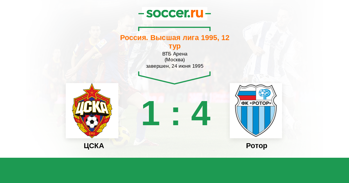 Россия. Премьер-Лига 30.08.1995 Ротор Логотип футбольный клуб Ротор (Волгоград) 2:2 Логотип футбольный клуб ЦСКА (Москва) ЦСКА