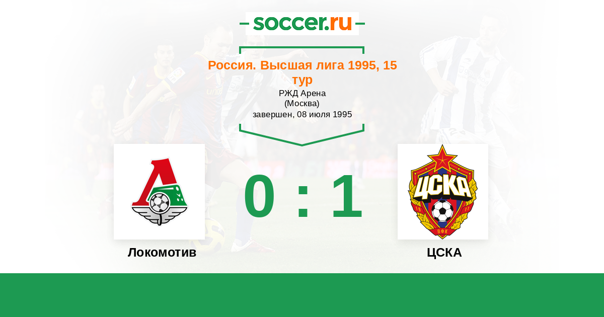 Россия. Премьер-Лига 26.08.1995 ЦСКА Логотип футбольный клуб ЦСКА (Москва) 0:1 Логотип футбольный клуб Локомотив (Москва) Локомотив