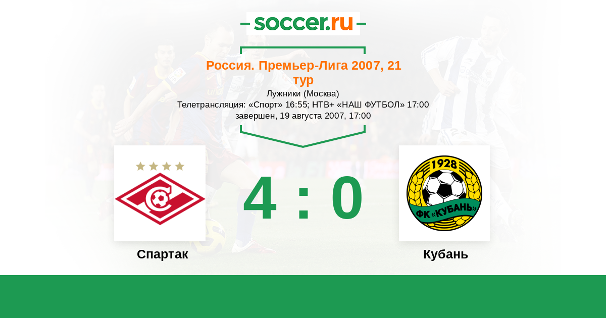 Россия. Премьер-Лига 29.04.2007 Кубань Логотип футбольный клуб Кубань (Краснодар) 0:0 Логотип футбольный клуб Спартак (Москва) Спартак