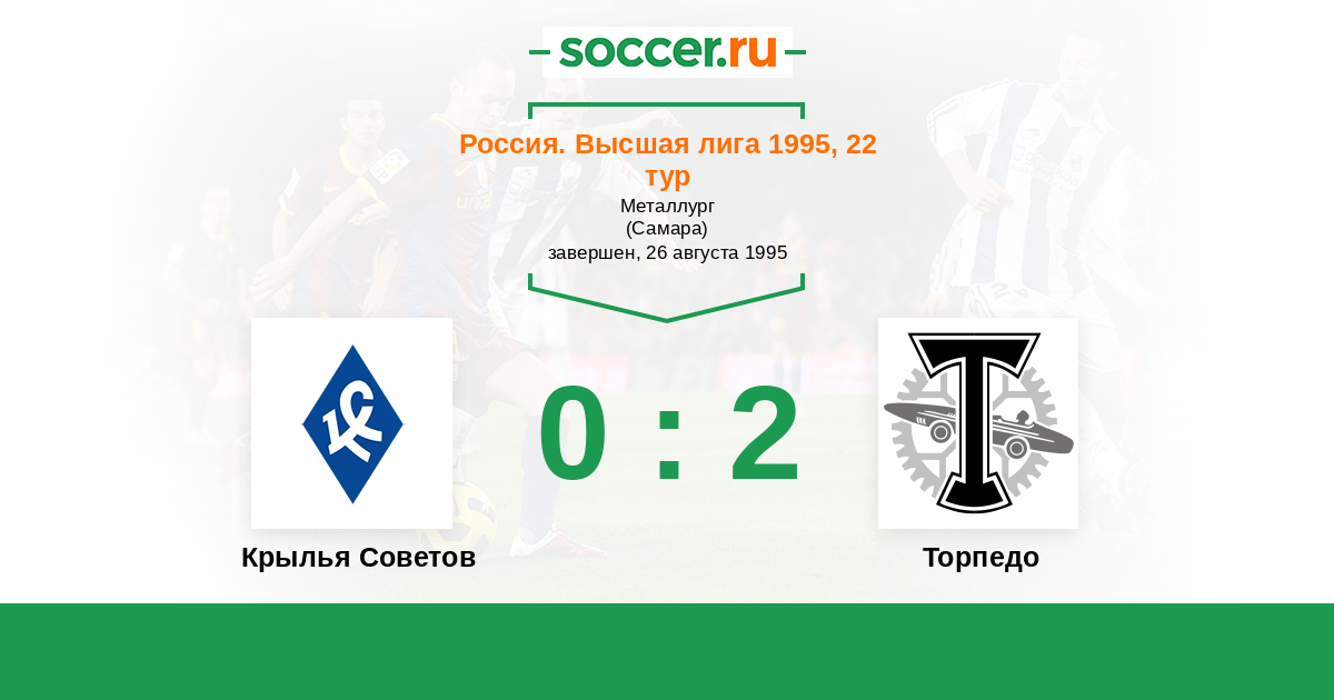 Россия. Премьер-Лига 01.07.1995 Торпедо Логотип футбольный клуб Торпедо (Москва) 0:0 Логотип футбольный клуб Крылья Советов (Самара) Крылья Советов