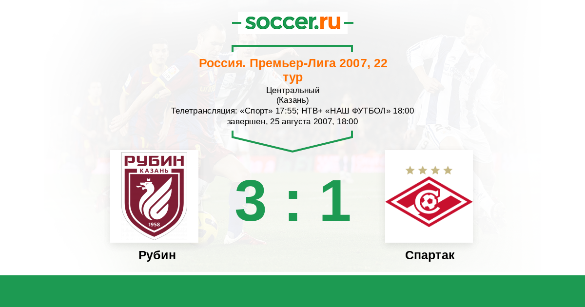 Россия. Премьер-Лига 06.05.2007 Спартак Логотип футбольный клуб Спартак (Москва) 2:1 Логотип футбольный клуб Рубин (Казань) Рубин