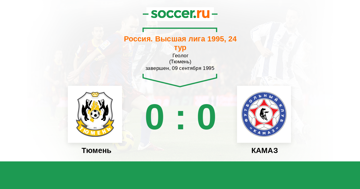 Россия. Премьер-Лига 18.09.1994 Динамо-Газовик Логотип футбольный клуб Динамо-Газовик (Тюмень) 0:0 Логотип футбольный клуб КАМАЗ (Набережные Челны) КАМАЗ