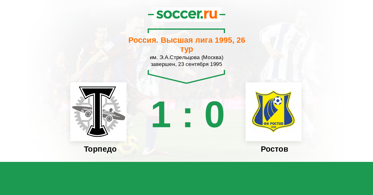Россия. Премьер-Лига 13.05.1995 Ростсельмаш Логотип футбольный клуб Ростсельмаш (Ростов-на-Дону) 1:2 Логотип футбольный клуб Торпедо (Москва) Торпедо