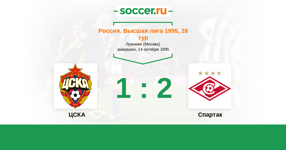 Россия. Премьер-Лига 28.06.1995 Спартак Логотип футбольный клуб Спартак (Москва) 3:1 Логотип футбольный клуб ЦСКА (Москва) ЦСКА