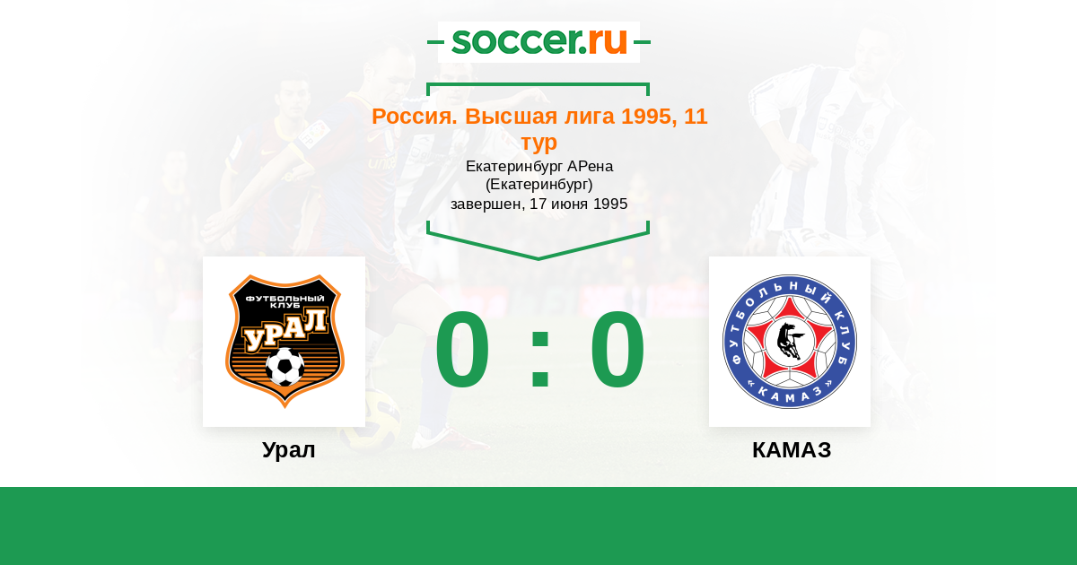 Россия. Премьер-Лига 29.07.1995 КАМАЗ Логотип футбольный клуб КАМАЗ (Набережные Челны) 4:0 Логотип футбольный клуб Уралмаш (Екатеринбург) Уралмаш