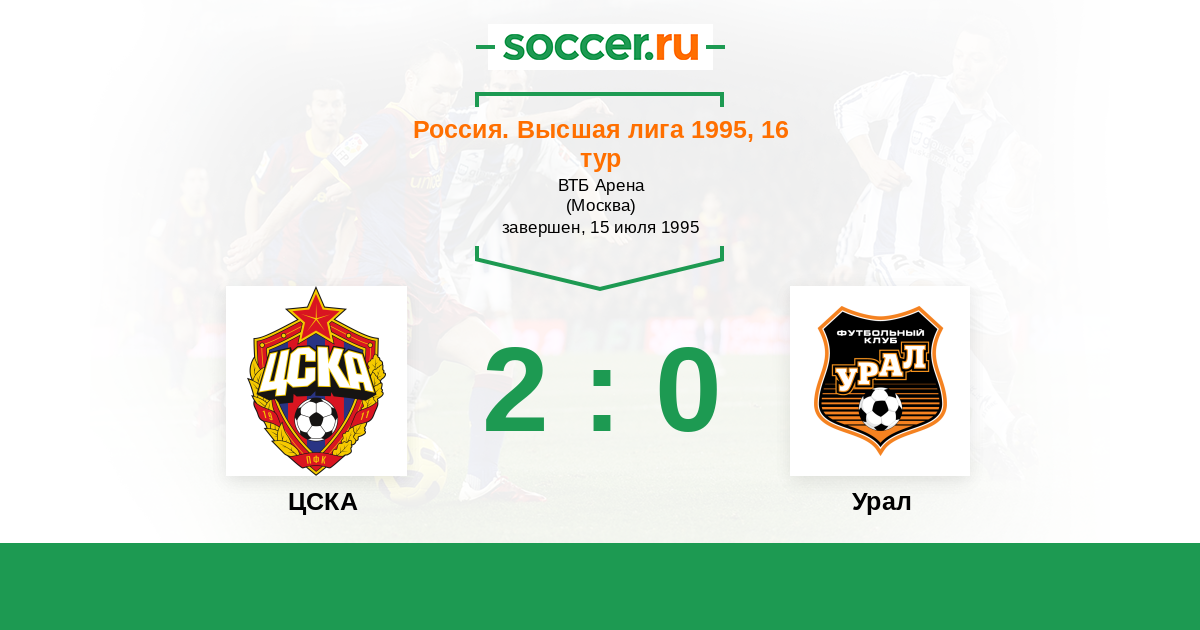 Россия. Премьер-Лига 27.05.1995 Уралмаш Логотип футбольный клуб Уралмаш (Екатеринбург) 1:0 Логотип футбольный клуб ЦСКА (Москва) ЦСКА