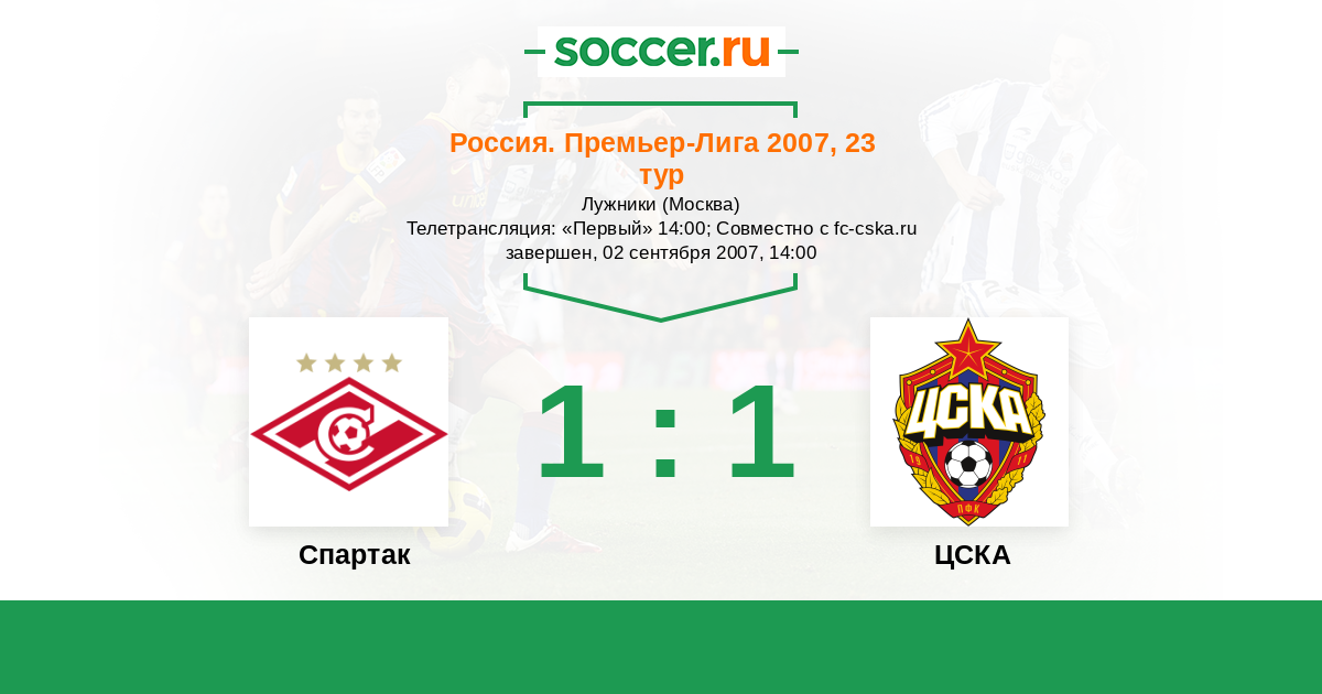 Россия. Премьер-Лига 01.04.2006 Спартак Логотип футбольный клуб Спартак (Москва) 1:1 Логотип футбольный клуб ЦСКА (Москва) ЦСКА
