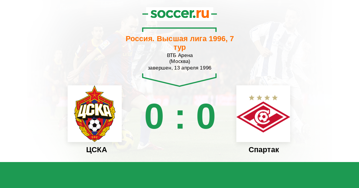 Россия. Премьер-Лига 14.08.1996 Спартак Логотип футбольный клуб Спартак (Москва) 3:1 Логотип футбольный клуб ЦСКА (Москва) ЦСКА