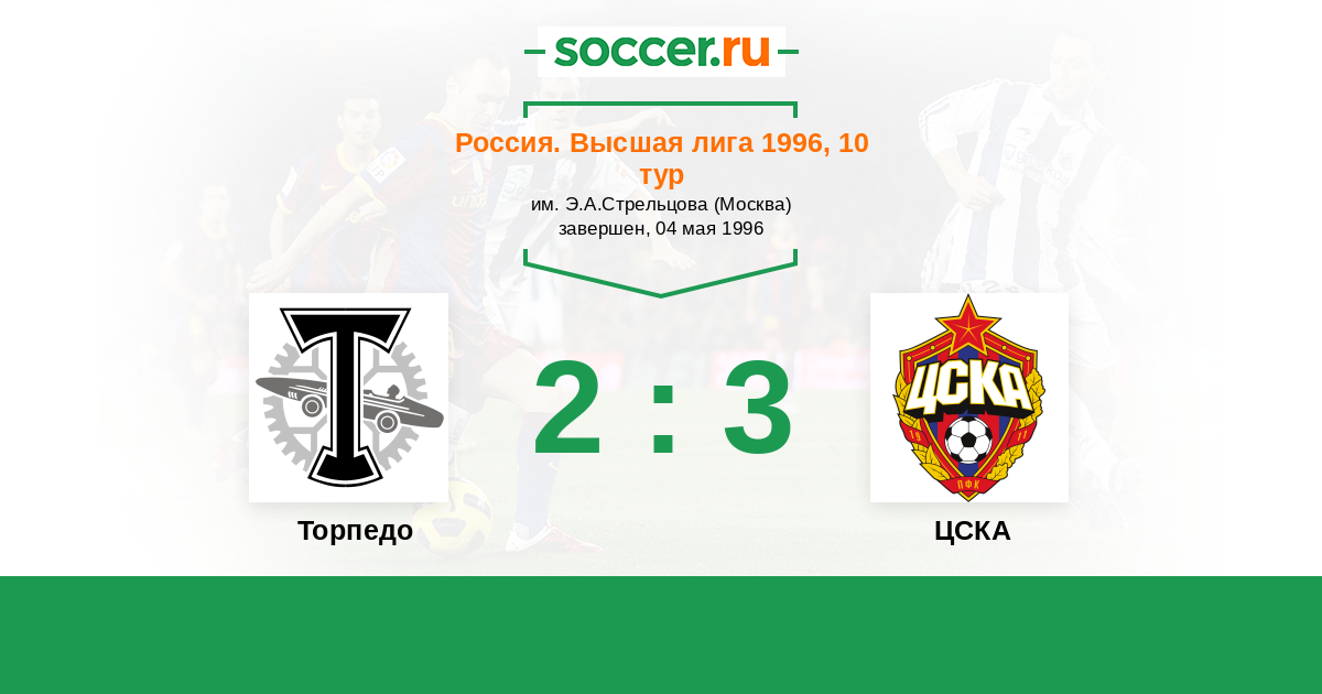 Россия. Премьер-Лига 26.10.1995 Торпедо Логотип футбольный клуб Торпедо (Москва) 1:2 Логотип футбольный клуб ЦСКА (Москва) ЦСКА
