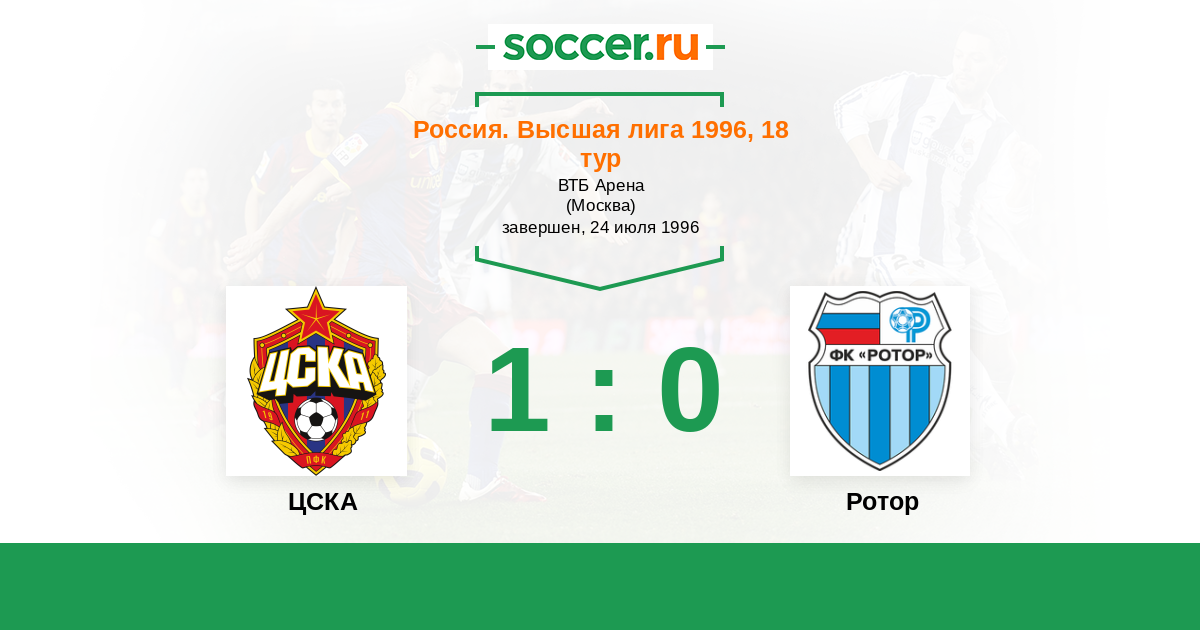 Россия. Премьер-Лига 02.03.1996 Ротор Логотип футбольный клуб Ротор (Волгоград) 2:0 Логотип футбольный клуб ЦСКА (Москва) ЦСКА
