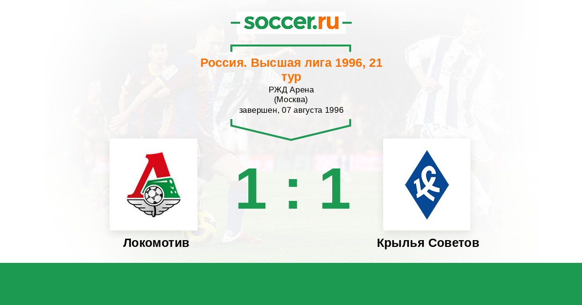 Россия. Премьер-Лига 23.03.1996 Крылья Советов Логотип футбольный клуб Крылья Советов (Самара) 1:0 Логотип футбольный клуб Локомотив (Москва) Локомотив