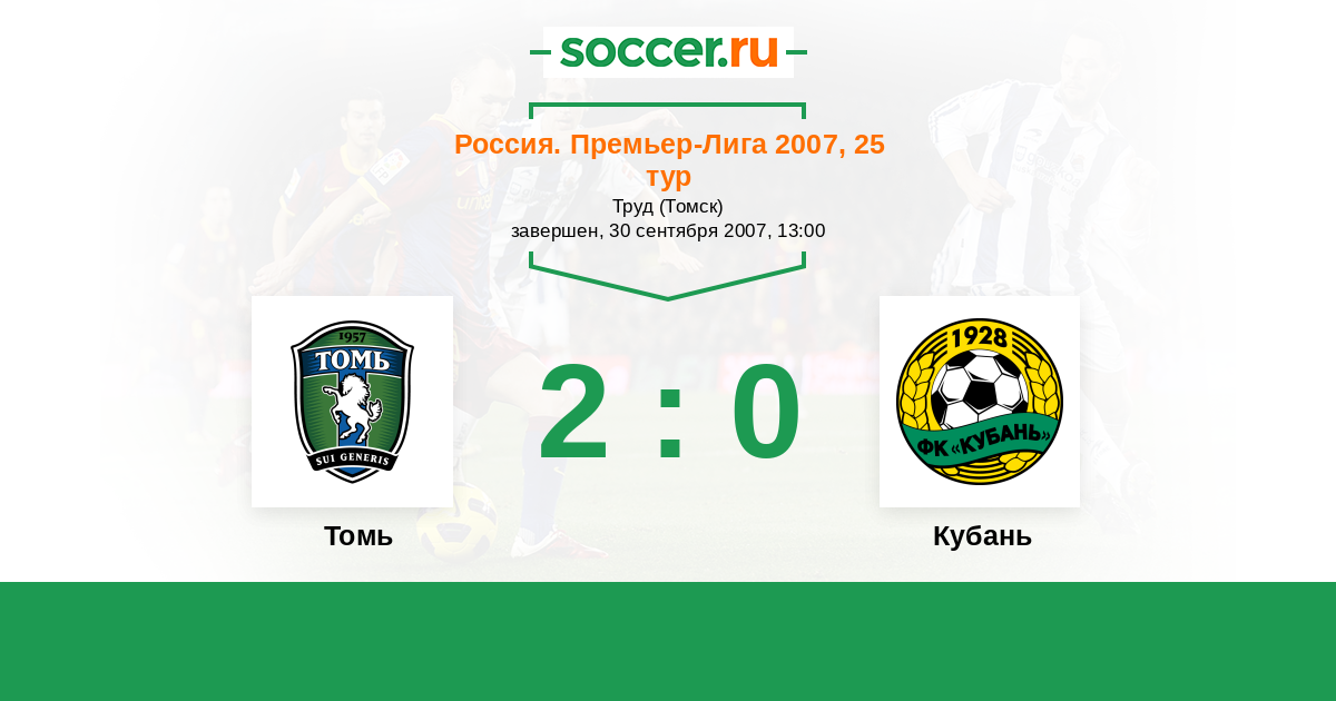 История матча Томь против Кубань